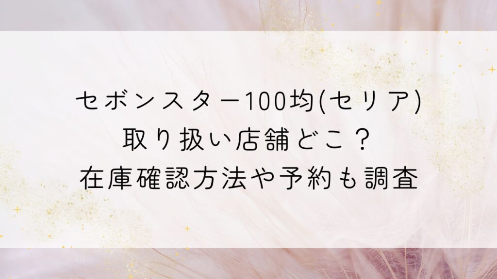 セリアセボンスター100均取り扱い店舗どこ?在庫確認方法や予約も調査